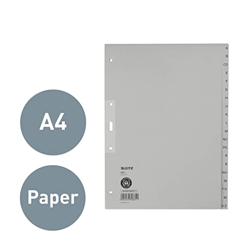 Leitz - Divisori alfabetici A-Z in carta, formato A4, carta, 20 fogli, colore: grigio