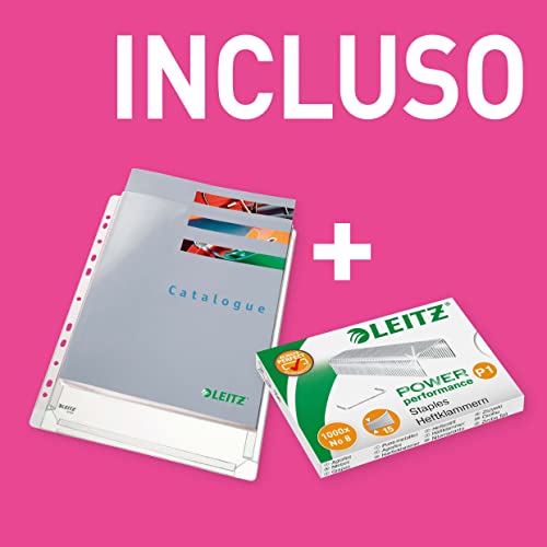 Inclusi 1 Confezione da 5 pezzi di Buste Premium espandibili in PVC Leitz con perforazione universale (capacità fino a 200 fogli formato A4 - 80 gr/mq) e 1000 punti P1 n. 8 Leitz Power Performance