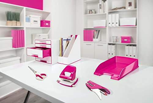 Leitz WOW Home Office Kit, Raccoglitore 4 Anelli, Scatola Organizer, Cucitrice, Perforatore, Forbici, Vaschetta Portacorrispondenza, Fucsia Metallizzato, 399480023