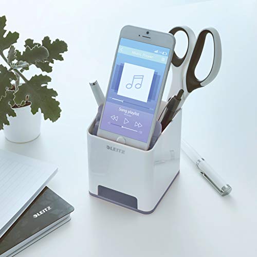 Contenuto: 1x Leitz Portapenne con funzione di amplificatore del suono, Gamma WOW, Bianco/Grigio, 53631001