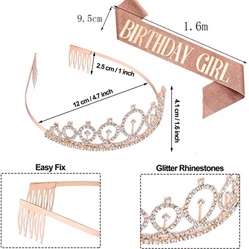 Leixi - Kit di fascia per compleanno e diadema con strass, per il 21° 30° compleanno, per ragazze, donne, feste di compleanno (rosa)