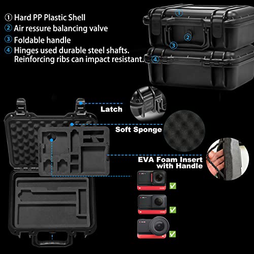 【Design Personalizzato】 Questa custodia da trasporto portatile impermeabile è dotata di inserti in schiuma EVA a doppio strato, progettati per proteggere la tua Insta360 ONE RS Twin Editon / Insta360 ONE R 4K Edition e altri accessori per action cam Insta360 ONE RS da eventuali danni.