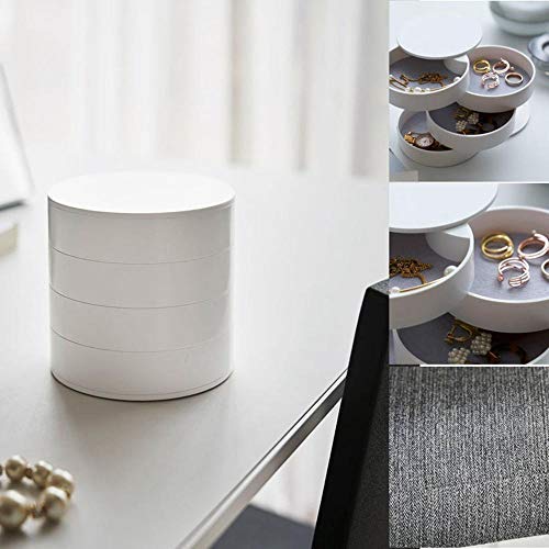 Lelestar Portagioie con Rotazione a 360 Gradi,Custodia per Gioielli Portagioielli per Donne e Ragazze, Anelli, Orecchini, collane e bracciali, di Piccole Dimensioni Scatola Donna (Bianco)