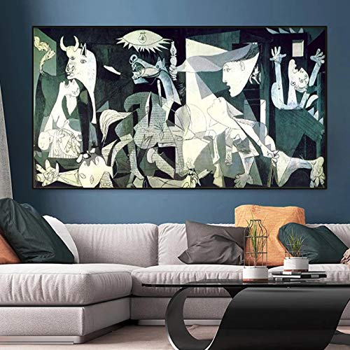 LELME Famoso Guernica-Picasso della Tela di Canapa Pittura Copia Nero Bianco Poster Da Parete Stampe d'arte Picasso Immagine Decorazione della Parete di Casa 55x110 cm cornice interna