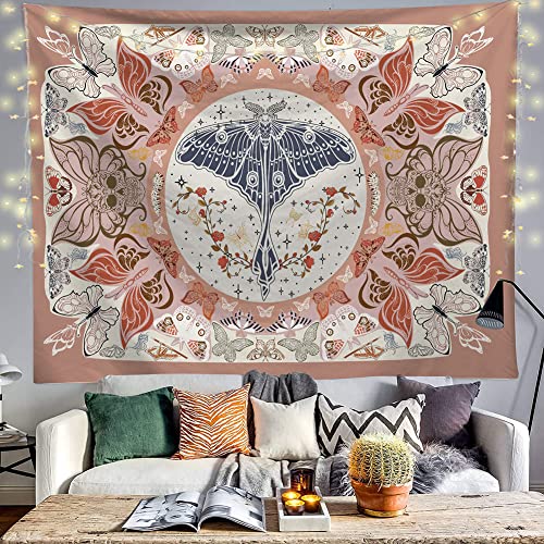 LELYFIT Arazzo da Parete Albero della Vita Luna e Sole Arazzo Farfalla spazio astronauta Appeso a Parete Nero Mandala Decorazione da Parete Hippie per Camera da Letto (S: 130 x 150 cm, Farfalla)