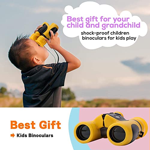 LELYFIT Binocolo per Bambini, Binoculars for Kids, binocoli per Bambini, Kit binocolo Bambini Giocattolo di esplorazione per Esterni Regalo educativo per Campeggio Ed Escursionismo (Giallo)