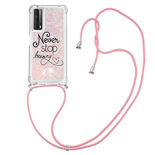 LEMAXELERS Custodia per Cellulare con Corda Collana per Huawei P Smart 2021 Case,Glitter Bling Liquido Sabbie Mobili Bumper Case TPU Cover con Collana Cordoncino Cordino Case,YB GS Dream