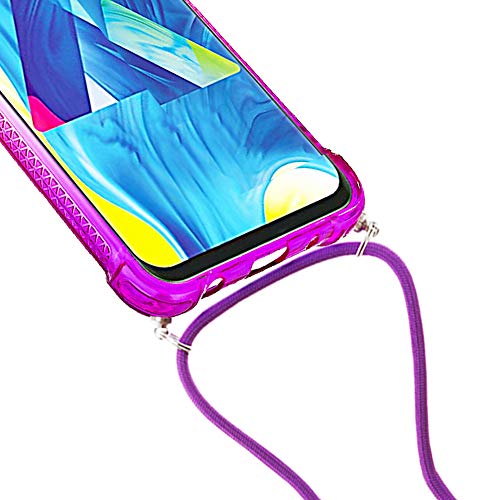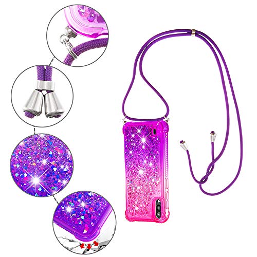 LEMAXELERS Custodia per Cellulare con Corda Collana per Samsung Galaxy A10 Case,Glitter Bling Liquido Sabbie Mobili Bumper Case TPU Cover con Collana Cordoncino Cordino Case,YB GS Pink Purple