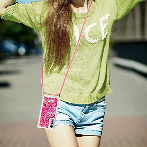LEMAXELERS Custodia per Cellulare con Corda Collana per LG Velvet 5G Case,Glitter Bling Liquido Sabbie Mobili Bumper Case TPU Cover con Collana Cordoncino Cordino Case,YB GS Cherry