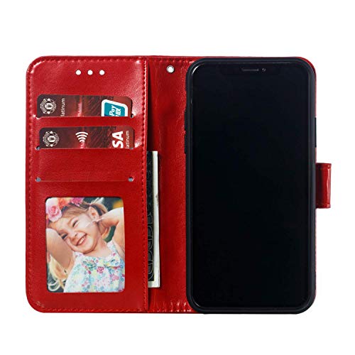 LEMAXELERS Custodia Google Pixela 4A Cover Portafoglio,Google Pixela 4A Custodia Fiore di Mandala in Rilievo Wallet Shock-Absorption Magnetica Supporto Protettiva Leather Flip Cover,LD Mandala Red