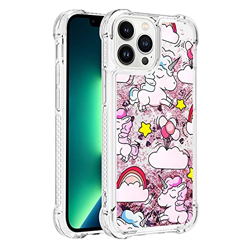 LEMAXELERS Custodia per iPhone 14 PRO 6.1" Case, Glitter Bling Liquido Sabbie Mobili Bumper Case TPU Silicone Protettivo Morbido Brillantini Quicksand Cover Case per iPhone 14 PRO,YBLS Unicorn