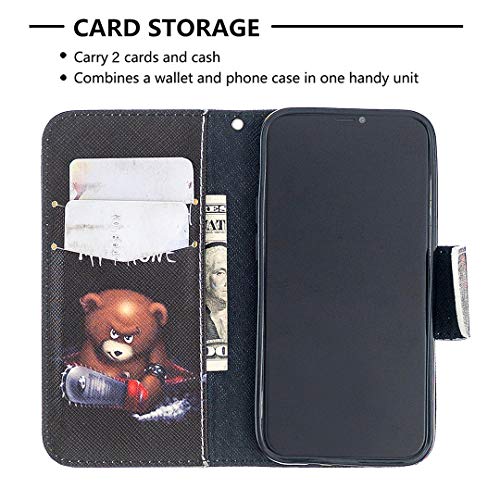 LEMAXELERS Custodia iPhone 12 Cover Portafoglio,iPhone 12 Custodia Pittura Colorata Wallet Shock-Absorption Magnetica Supporto Protettiva Bumper Leather Flip Cover,BF Saws Bear