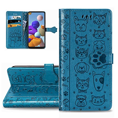 LEMAXELERS Custodia Oppo A17 Cover Portafoglio,Oppo A17 Custodia Carino Bel Gatto Cane in Rilievo Gatto Cane Wallet Shock-Absorption Magnetica Leather Flip Cover,SD Cat Blue