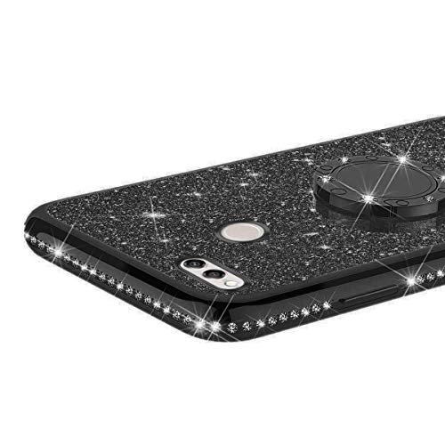LEMAXELERS Custodia Redmi Note 8T,Cover Redmi Note 8T Custodia Glitter Bling Diamond Placcatura in Silicone TPU Cover Morbida con Supporto ad Anello Stand,Black Plating TPU con Stand