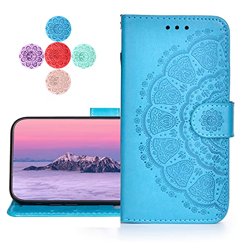 LEMAXELERS Custodia per Samsung Galaxy Note 9, Custodia in Pelle Samsung Galaxy Note 9, Mandala Fiore in Rilievo Caso Libro in Pelle PU con Portafoglio Supporto, Chiusura Magnetica,LD3 Blue