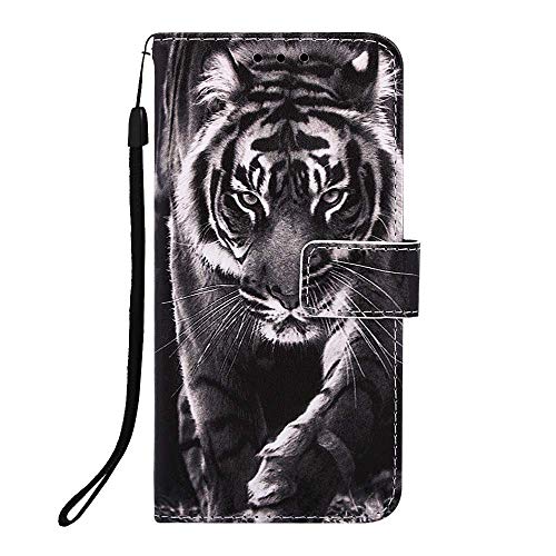 LEMAXELERS Galaxy S10 Custodia Cover Portafoglio,Custodia Samsung Galaxy S10 Pittura colorata Wallet Shock-Absorption Magnetica Supporto Protettiva Bumper Leather Flip Cover,YB Black White Tiger