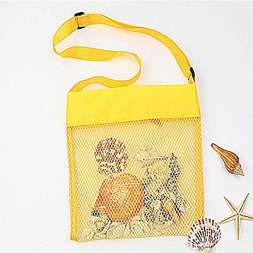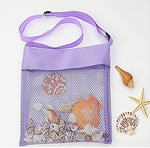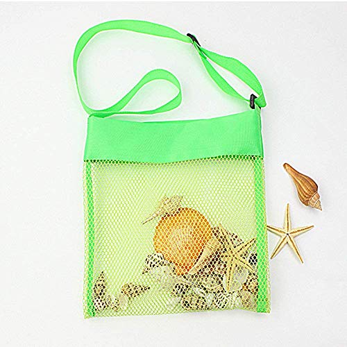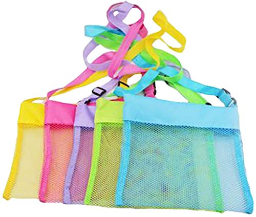 LEMAXELERS 5 pezzi borsa da spiaggia in rete colorata con conchiglie, traspiranti, da spiaggia, con cinghie regolabili per riporre giocattoli, 5 pezzi
