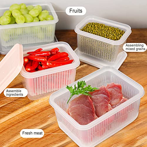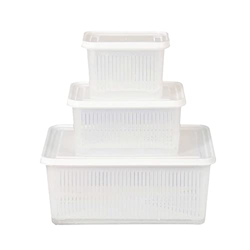 LEMCC Confezione da 3 contenitori trasparenti per frutta con colino rettangolare drenante più croccante contenitore di plastica per verdure per conservare frutta, verdura, insalata