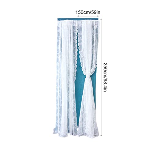 LEMCC Tende trasparenti in pizzo bianco, 2 pannelli, 1,5 x 2,5 m, romantiche rose floreali, tende a pannello in pizzo vintage, per cucina, camera da letto e soggiorno