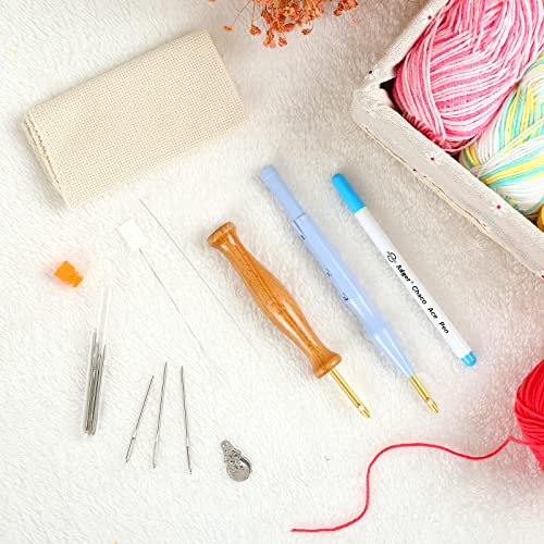 KIT COMPLETO: Anche forniamo infilatori per aghi, una tela, gli aghi per occhi grandi e una penna. Tutti gli accessori inclusi per fare il ricamo fai da te.