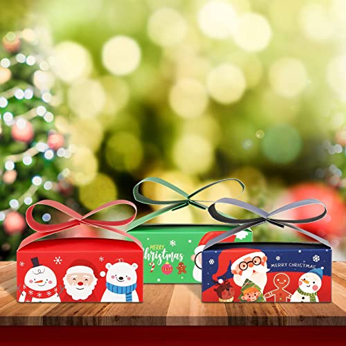 DESIGN UNICO: Queste scatole natalizie per biscotti hanno un fiocco sulla parte superiore. La dimensione sono sufficiente per i vari oggetti piccoli per Natale, come caramelle, cioccolati, biscotti, ecc..