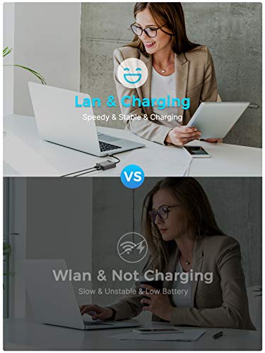 【Caricabatterie PD con alimentazione rapida USB C da 100 W】 La porta di ricarica femmina dell'adattatore da USB C a Ethernet può fornire 100 W di alimentazione. Puoi connetterti alla rete senza preoccuparti di un'alimentazione insufficiente. (❤ Nota: utilizzare un adattatore di alimentazione da 30 W o superiore)