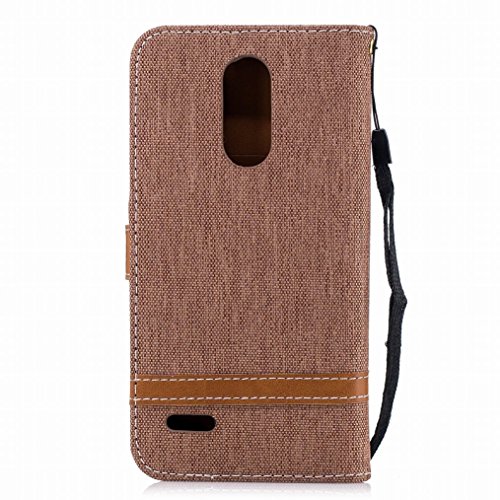 LEMORRY Per LG K8 (2018) / LG K9 Custodia Pelle Cuoio Flip Portafoglio Borsa Sottile Bumper Protettivo Magnetico Morbido Silicone TPU Cover Custodia per LG K8 2018, Stile del Denim Marrone
