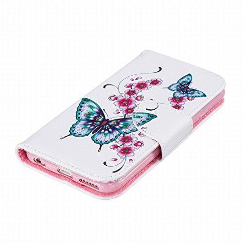LEMORRY Per Apple iPhone 6 (4.7) Custodia Pelle Cuoio Flip Portafoglio Borsa Protettivo Magnetico Morbido Silicone TPU Cover Custodia per iPhone 6 (4.7"), Farfalla Stampa