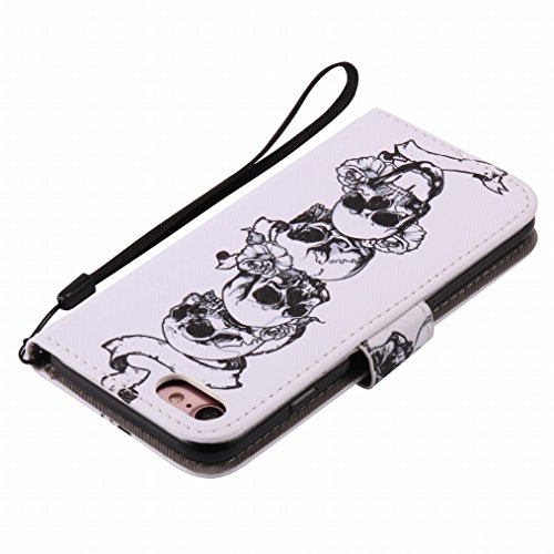 LEMORRY Per Apple iPhone 7 Custodia Pelle Cuoio Flip Portafoglio Borsa Protettivo Magnetico Morbido Silicone TPU Cover Custodia per Apple iPhone 7, personalità Skull