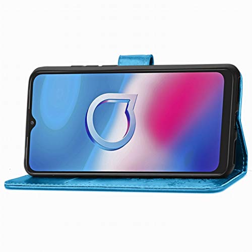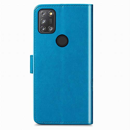 LEMORRY Cover Alcatel 3X (2020) Custodia Goffratura Pelle Cuoio Portafoglio Borsa Protettivo Bumper Magnetico Morbido Sottile Silicone TPU Flip Custodia Cover per Alcatel 3X (2020) (Blu)