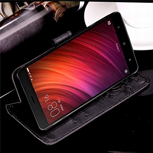 LEMORRY Cover Xiaomi Redmi Note 4X Custodia Pelle Portafoglio Cuoio Flip Borsa Con Slot per Schede Sottile Protettivo Magnetico Chiusura Morbido Silicone TPU Cover Case, Fortunato del Trifoglio Nero