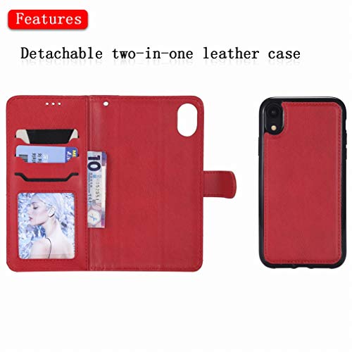LEMORRY Custodia per Apple iPhone XR Multifunzione Custodia Pelle Cuoio Portafoglio Porta Carte di Credito & Cornice 2in1 Protettivo Magnetico Morbido TPU Silicone Cover per iPhone XR (Rosso)