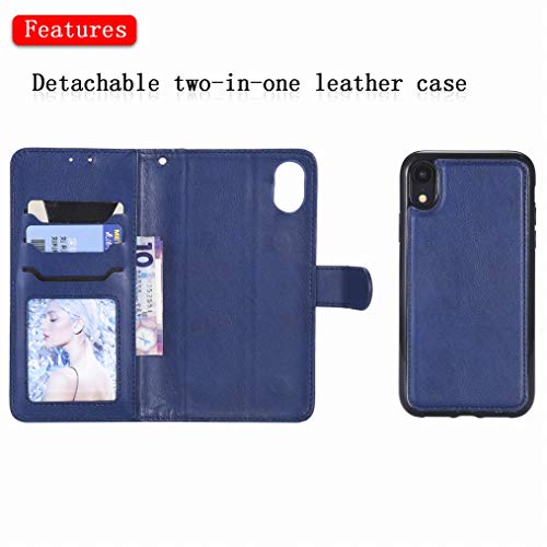 LEMORRY Custodia per Apple iPhone XR Multifunzione Custodia Pelle Cuoio Portafoglio Porta Carte di Credito & Cornice 2in1 Protettivo Magnetico Morbido TPU Silicone Cover per iPhone XR (Blu)