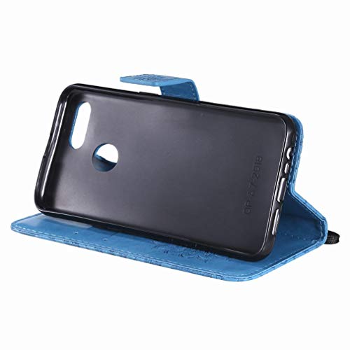 LEMORRY Custodia per Oppo A7 (AX7) Custodia Pelle Cover Cuoio Portafoglio Borsa Archiviazione di Carte Protettivo Magnetico Bumper Morbido Silicone TPU Cover Oppo A7 (AX7), Fiorire (Blu)