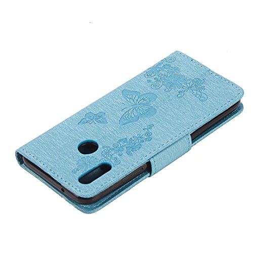 LEMORRY Per Huawei P20 Lite Custodia Pelle Cuoio Flip Portafoglio Borsa Sottile Bumper Protettivo Magnetico Chiusura Morbido Silicone TPU Cover Custodia per Huawei P20 Lite, Fortunato Farfalla (Blu)