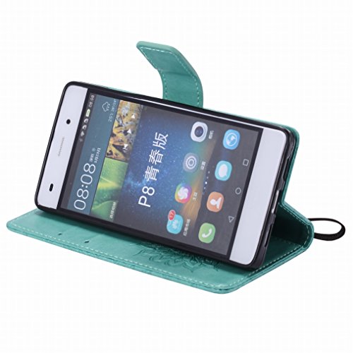 LEMORRY Per Huawei P8lite / ALE-L21 Custodia Pelle Cuoio Flip Portafoglio Borsa Sottile Bumper Protettivo Magnetico Morbido Silicone TPU Cover Custodia per Huawei P8lite, Fiorire Verde