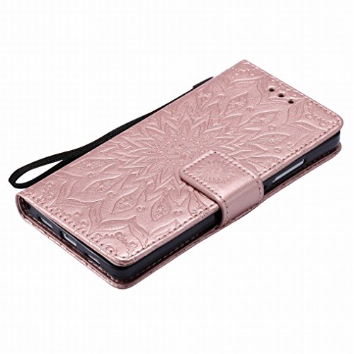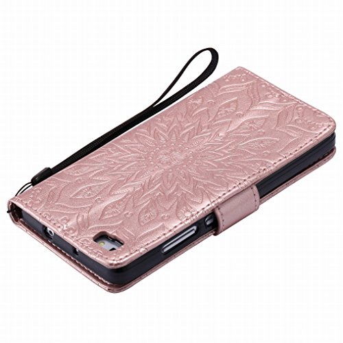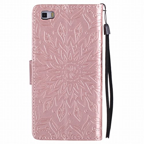 LEMORRY Per Huawei P8lite / ALE-L21 Custodia Pelle Cuoio Flip Portafoglio Borsa Sottile Bumper Protettivo Magnetico Morbido Silicone TPU Cover Custodia per Huawei P8lite, Fiorire Oro Rosa