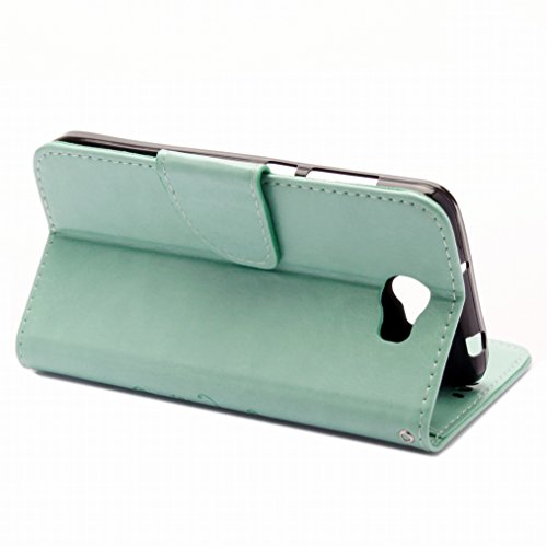 LEMORRY Per Huawei Y5 2 (Huawei Y5II) Custodia Pelle Cuoio Flip Portafoglio Borsa Sottile Protettivo Magnetico Chiusura Morbido Silicone TPU Cover Custodia per Huawei Y5 2, Fortunato Erba Verde