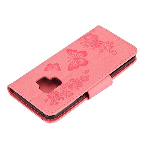 LEMORRY Per Samsung Galaxy S9 Custodia Pelle Cuoio Flip Portafoglio Borsa Sottile Bumper Protettivo Magnetico Chiusura Morbido Silicone TPU Cover Custodia per Galaxy S9, Fortunato Farfalla (Rose)