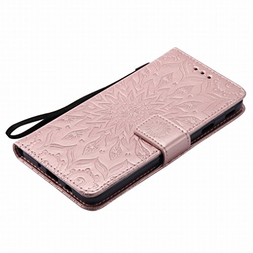 LEMORRY Per Samsung Galaxy J7 Prime Custodia Pelle Cuoio Flip Portafoglio Borsa Protettivo Magnetico Morbido Silicone TPU Cover Custodia per Galaxy J7 Prime/Galaxy On NXT, Fiorire Oro Rosa