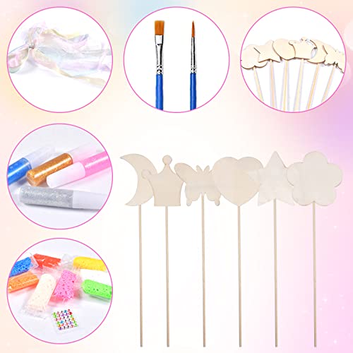 Lemotoy Kit Pittura Bacchetta Magica, 6 Pezzi Fai da Te Bacchetta Stella Bacchetta Principessa Bacchetta Fata Stella Bastone da Fata Performance per Fornitura Festa Compleanno