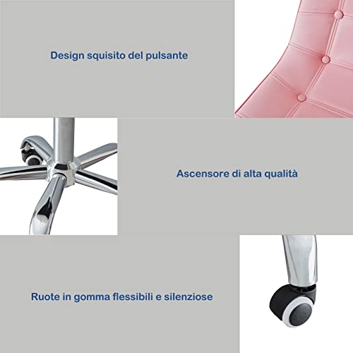 LEMROE Sedie da Scrivania Arredo Studio per Sedia Ufficio Rosa in Finta Pelle Sedia Ergonomica Posturale con Rotelle (Rosa- Ecopelle)