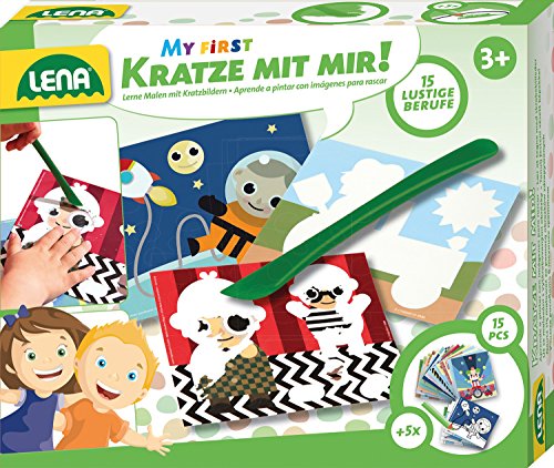 Contenuto: 15 diverse immagini da grattare con divertenti motivi professionali da grattare, 1 penna tiragraffi e 5 motivi da colorare