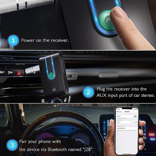 LENCENT Ricevitore Bluetooth 5.0, Adattatore Bluetooth con Microfono Integrato, Chiamate in Vivavoce, Cancellazione del Rumore, Bluetooth Auto AUX 3.5 mm a Bassa Latenza per Auto TV Domestica Audio