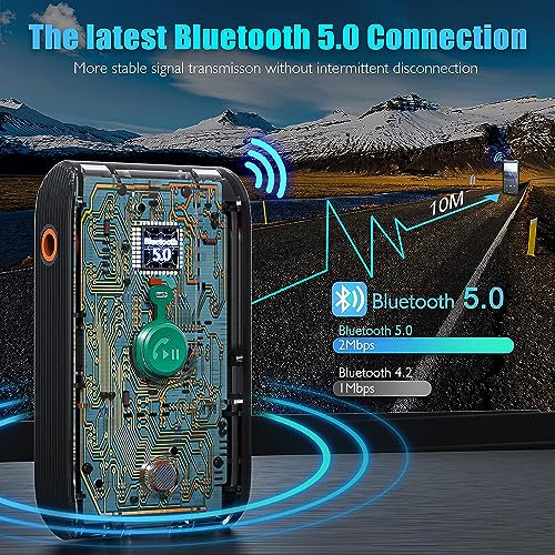 【Cancellazione del Rumore - Bluetooth V5.0 Aggiornato】 L'accoppiamento più veloce e il suono più stabile rispetto al bluetooth v4.2 evitano una connessione instabile. Il ricevitore Bluetooth auto con le più recenti tecnologie di cancellazione del rumore CVC8.0 e DSP (Digital Signal Processor), possono eliminare l'rumore e bloccare il rumore di fondo invadente (come vento, traffico o folla), fornendo suoni di chiamata cristallini.