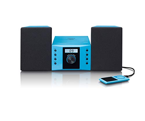 Lenco 810024 mc-013bu - sistema stereo compatto per bambini con lettore cd e display lcd, ingresso aux 2 x 2 w rms con adesivi blu