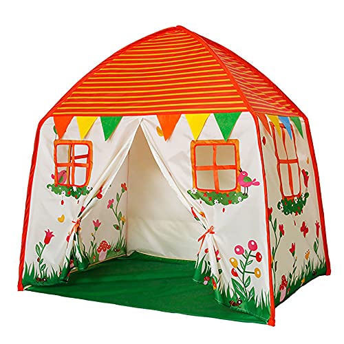 LENJKYYO Tenda da gioco per bambini, in tessuto di poliestere, arancione, con motivi da giardino, per interni ed esterni, pieghevole, per bambini, tenda da gioco per bambini, tenda da giardino