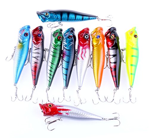 LENPABY 10PCS popper Floating Lure 9 cm 12 g popper esche da pesca set Treble ganci attrezzatura da pesca Setsurface Topwater duro pesca