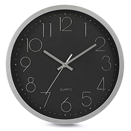 LENRUS - Orologio da parete da 30 cm, moderno, al quarzo, silenzioso, senza ticchettio, decorazione per la casa (argento & nero)