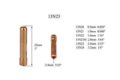 TIG Gas Lens Collet Body 45V44 2.4mm Collet 13N23 2.4mm 12# Pyrex Glass Cup Kit DB SR WP 9 20 25 TIG Welding Torch 9pk